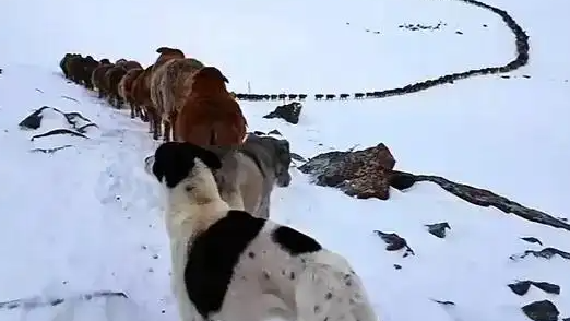 2只牧羊犬把4百余只羊管出满分纪律